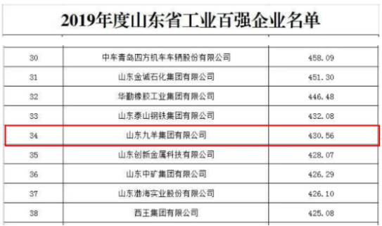 山东省工业百强企业第34位