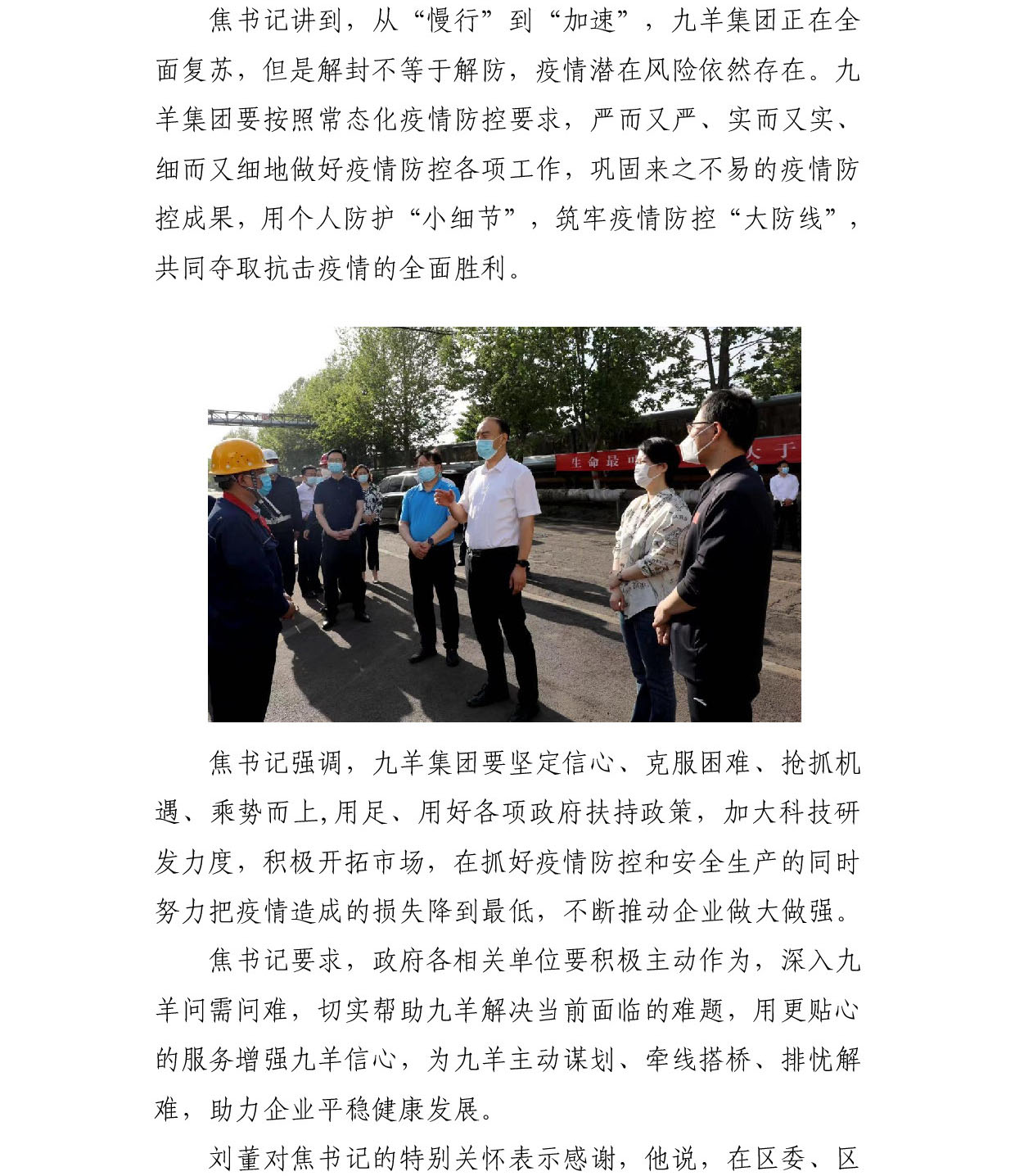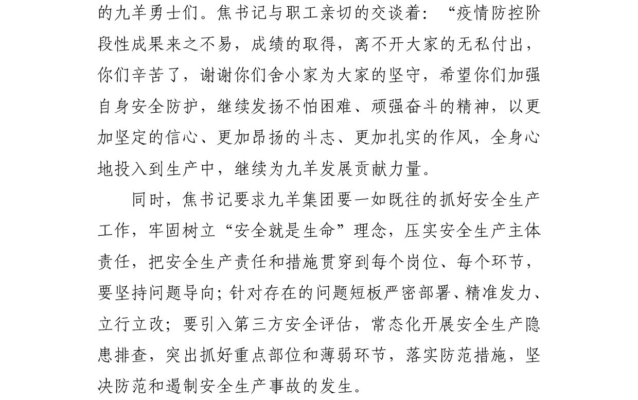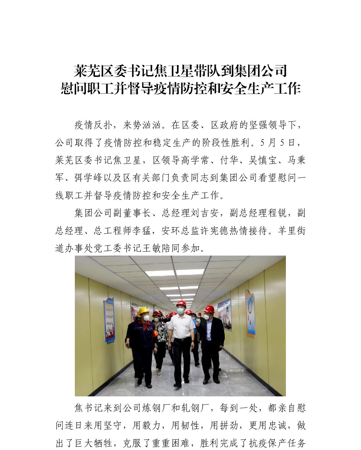 莱芜区委书记焦卫星带队到集团公司慰问职工并督导疫情防控和清静生产事情
