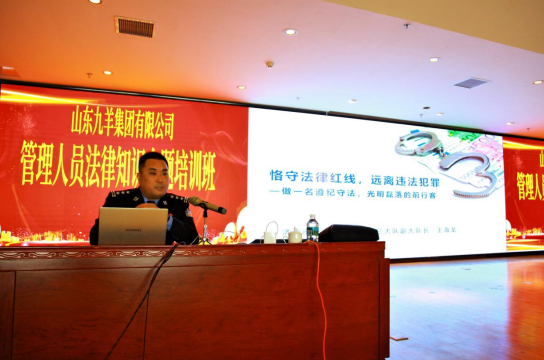为提高公司治理职员的执法意识,,,,,,,更好懂法、遵法、遵法,,,,,,,进一步提升公司治理职员对经济犯法的熟悉及提防行动,,,,,,,推动公司各项事情规范化、程序化、制度化,,,,,,,树立遵纪遵法、依法效劳、风清气正的做事创业气氛,,,,,,,更好增进ag8国际大厅登录|官网首页集团稳固康健生长,,,,,,,3月14日上午,,,,,,,集团公司约请济南市公安局经侦支队三大队副大队长王海龙为公司各级治理职员举行执法知识培训。。。。。。。。