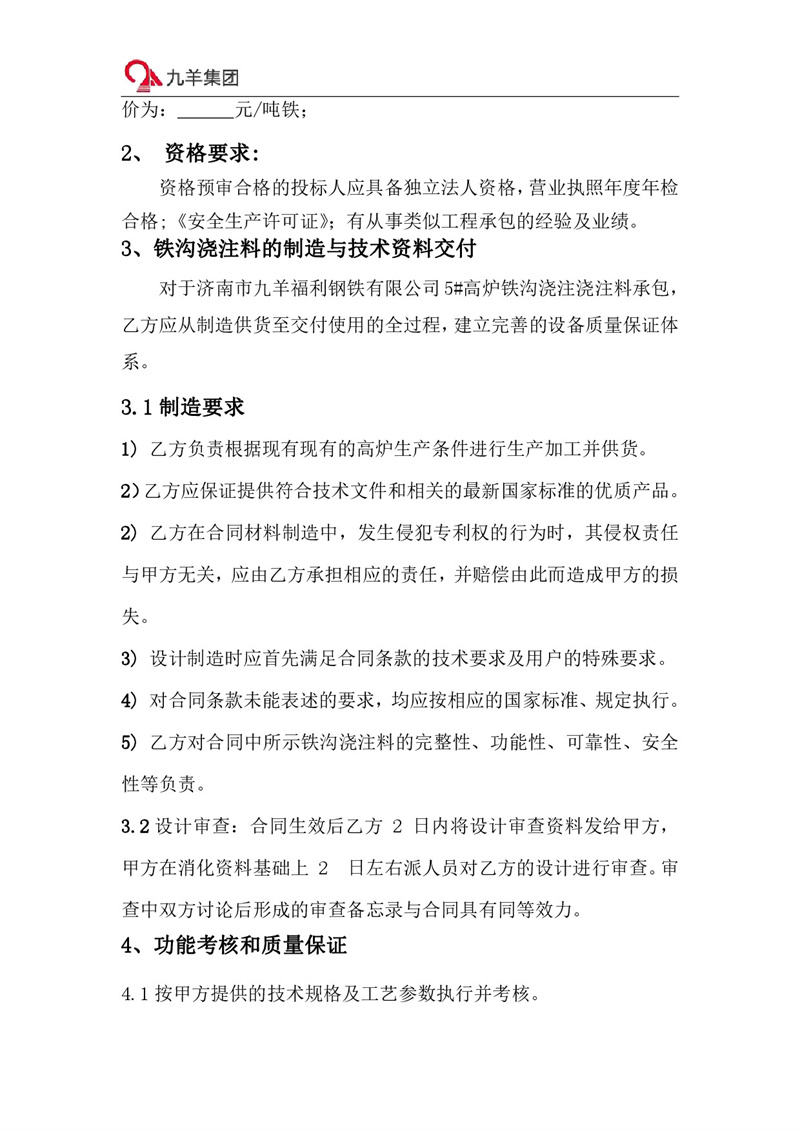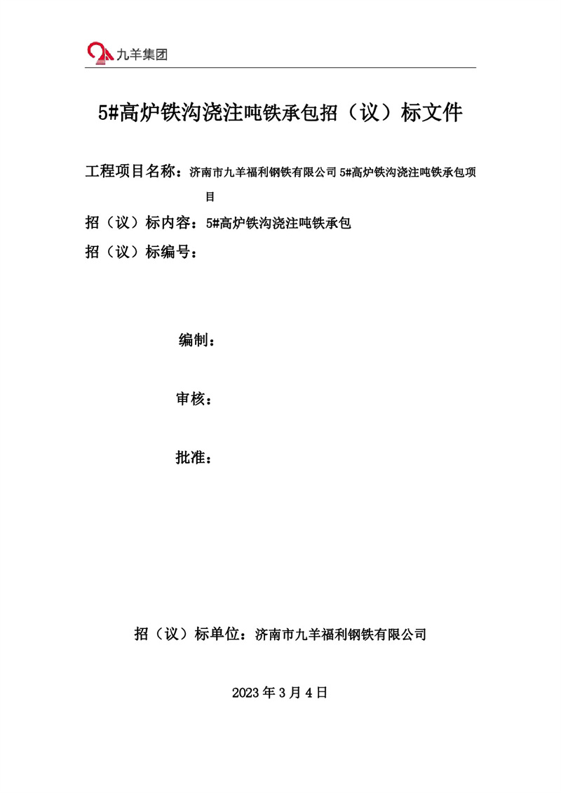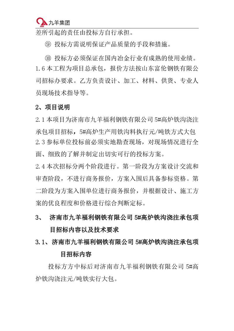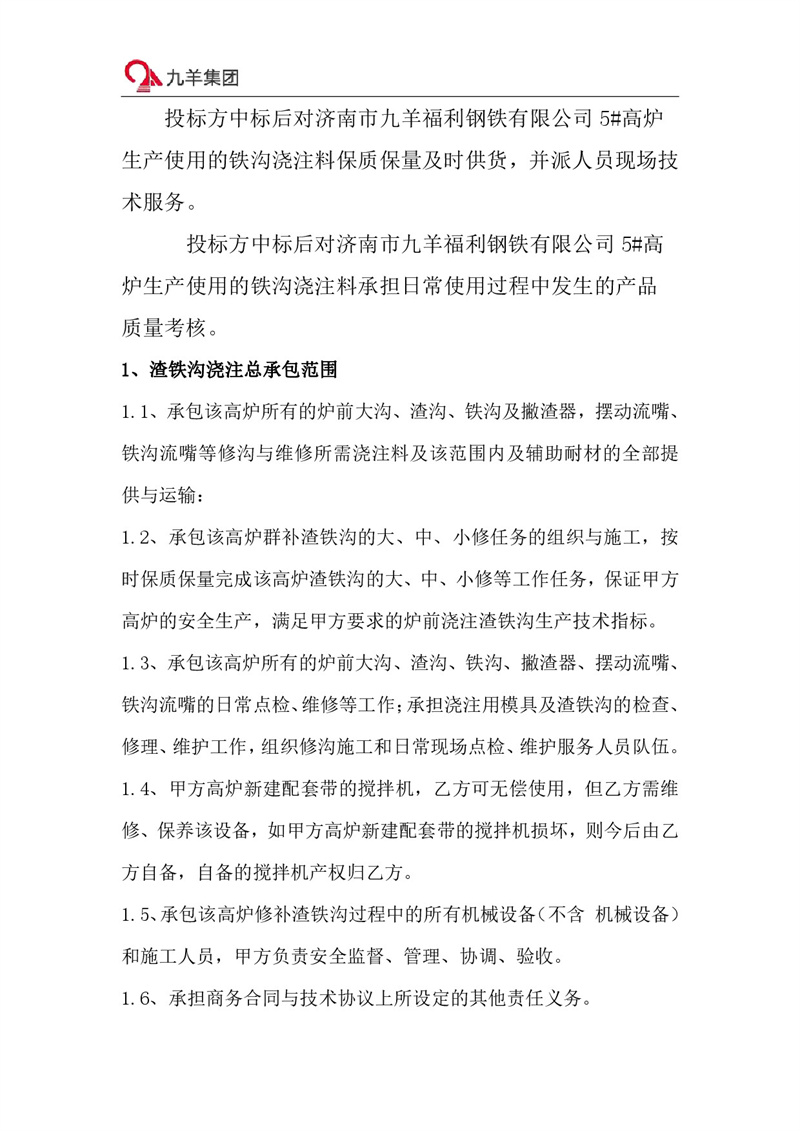 济南市ag8国际大厅登录|官网首页福利钢铁有限公司5#高炉铁沟浇注吨铁承包项目