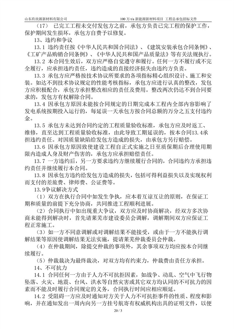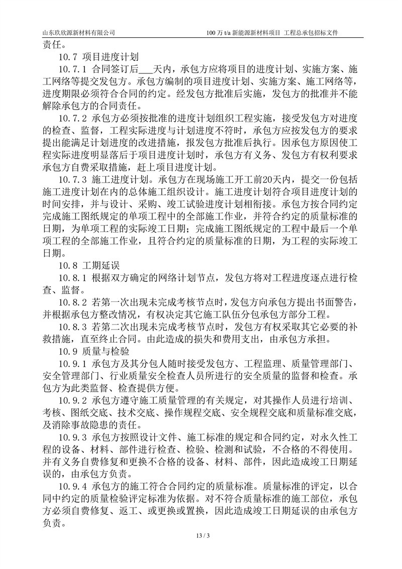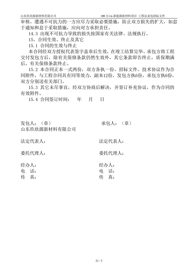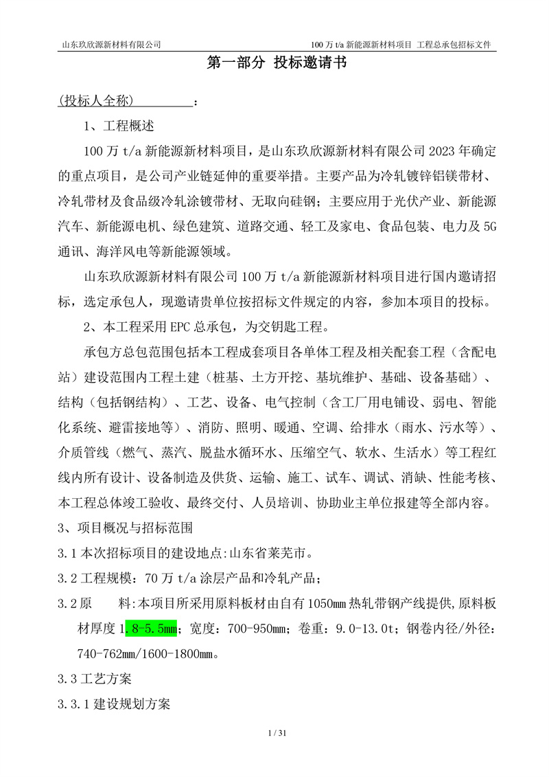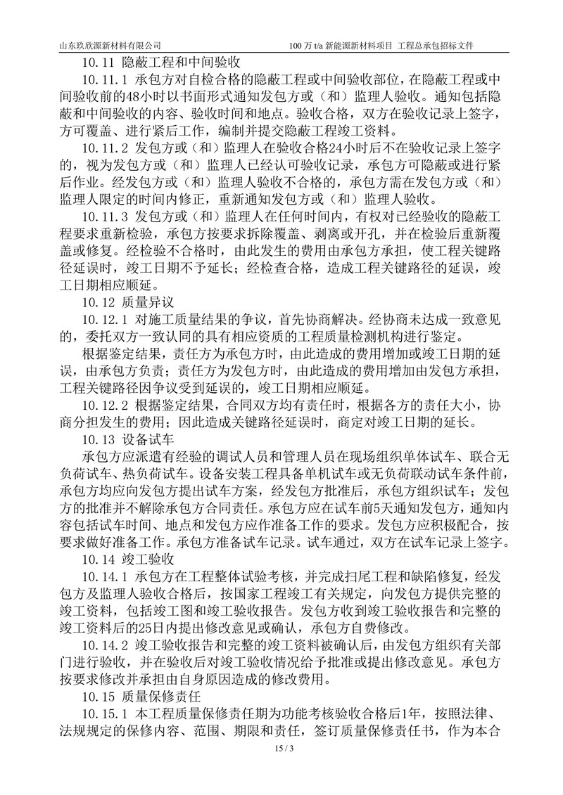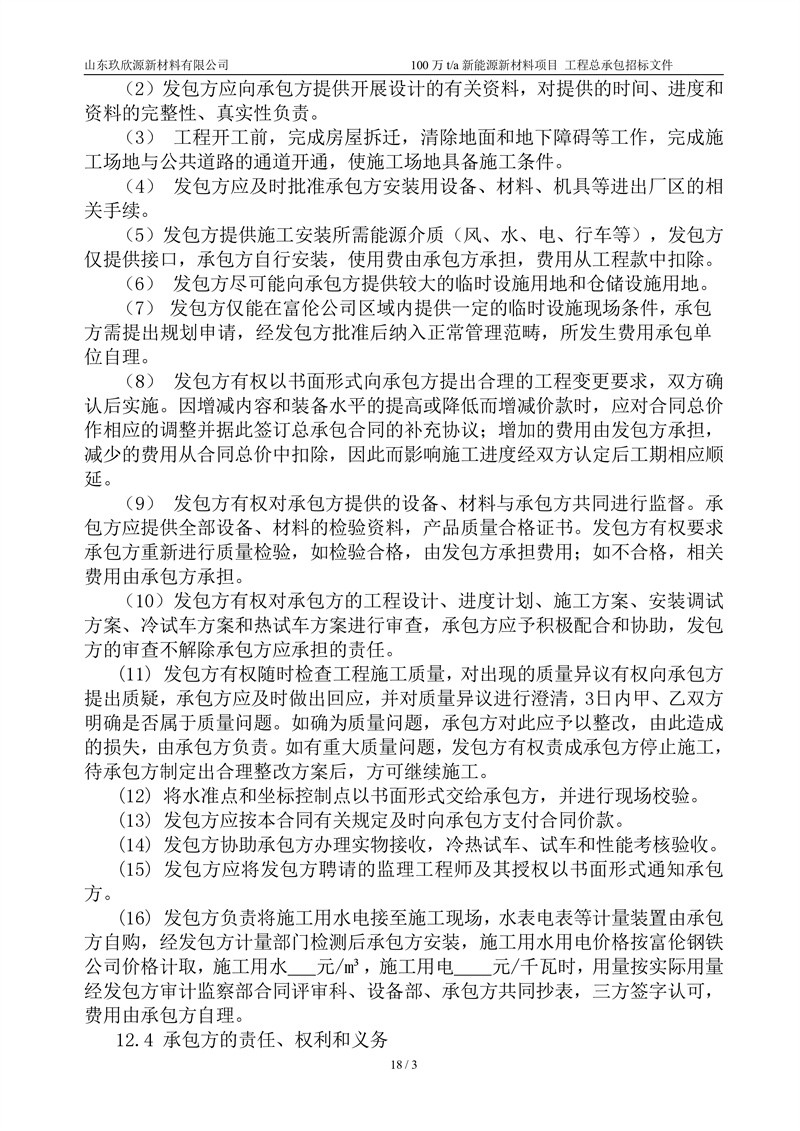 山东玖欣源新质料有限公司100万t/a新能源新质料项目工程总承包招标文件