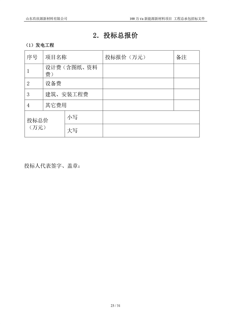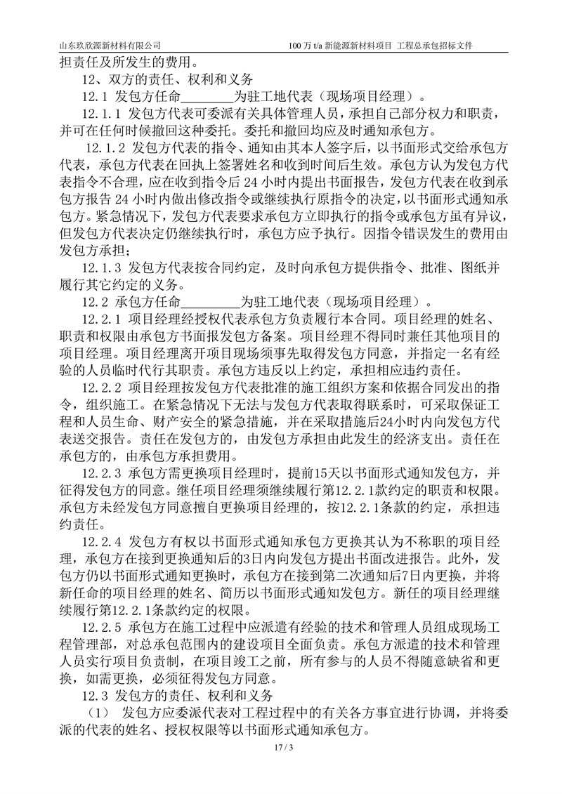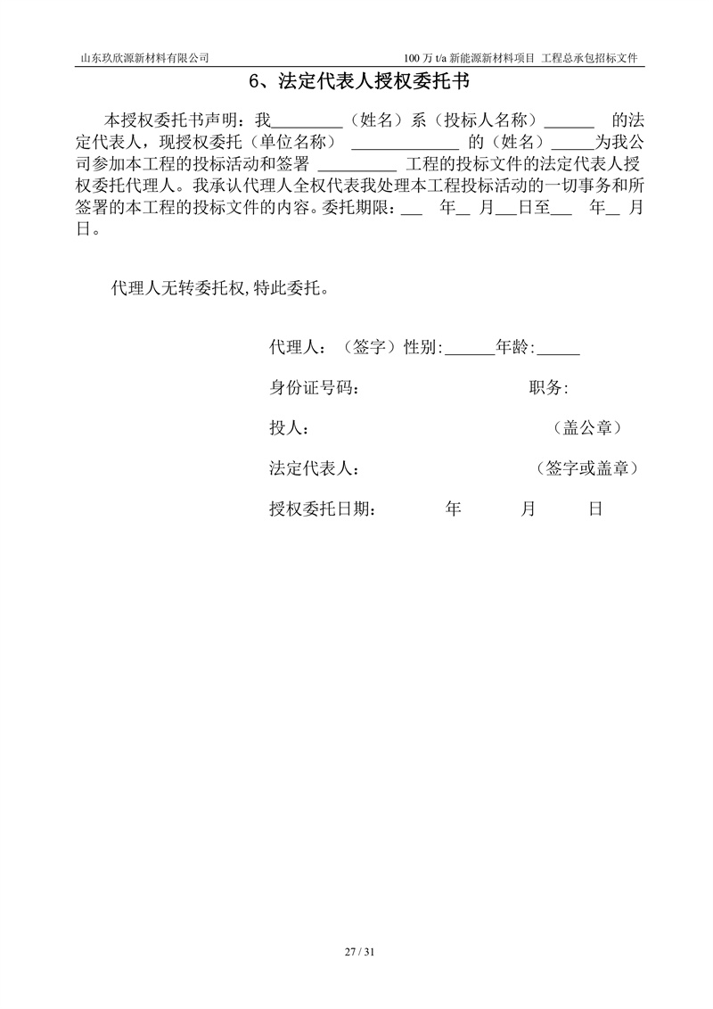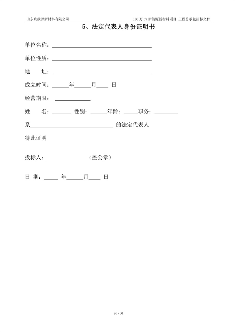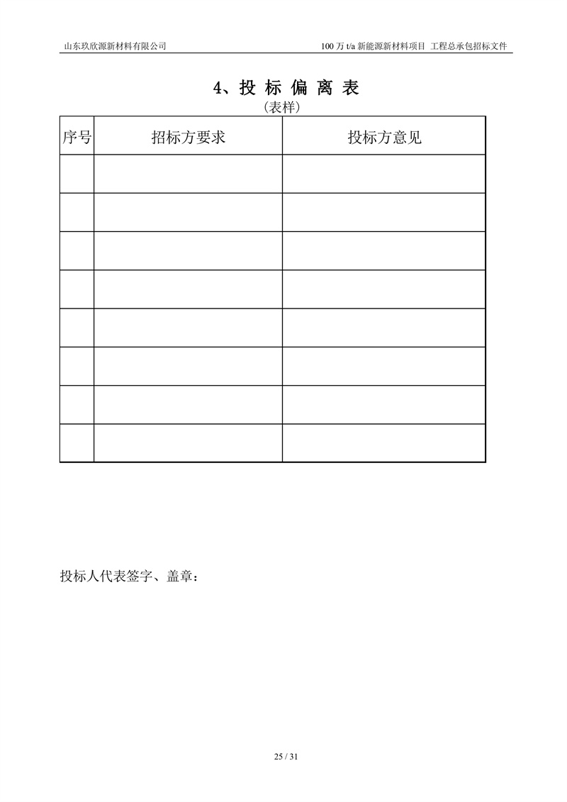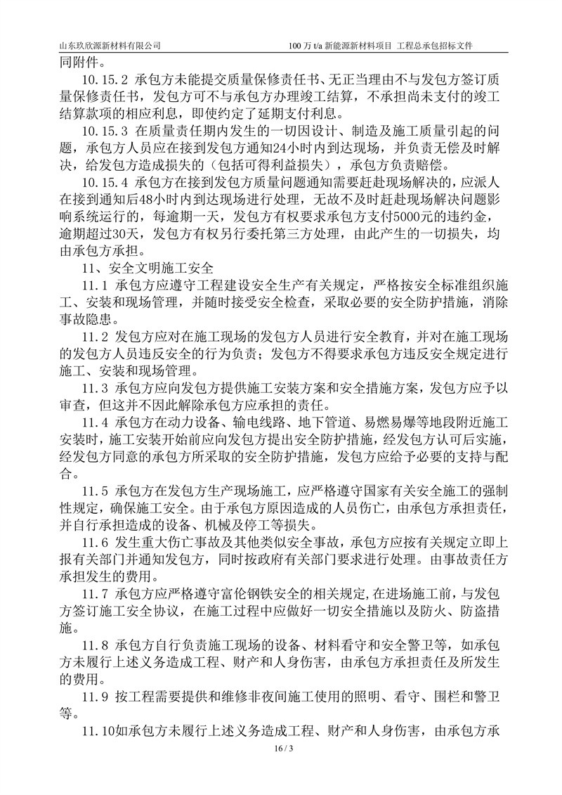 山东玖欣源新质料有限公司100万t/a新能源新质料项目工程总承包招标文件