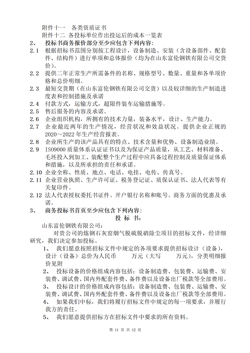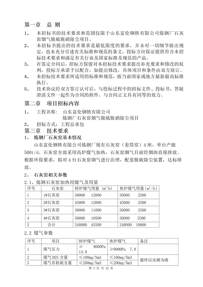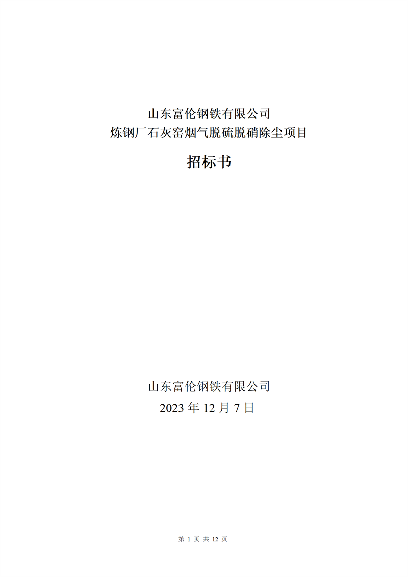 山东富伦钢铁有限公司炼钢厂石灰窑烟气脱硫脱硝除尘项目招标书