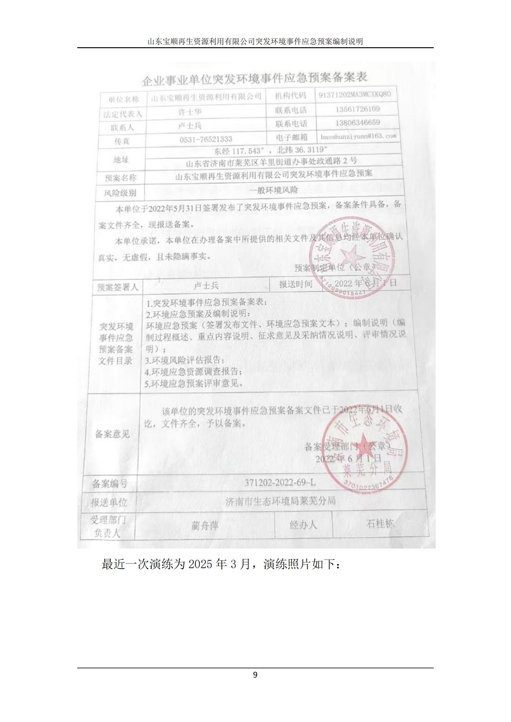 山东宝顺再生资源使用有限公司突发情形事务应急预案(2025年修订版)